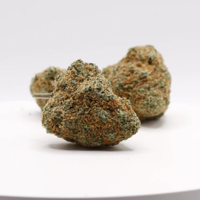 La Banana Dream CBD présente de grosses buds compactes et denses, à la teinte vert moyen lumineuse, généreusement parsemées de nombreux pistils orangés. La structure est solide, bien formée, avec une texture sèche et craquante révélant un curing maîtrisé. L’ensemble dégage une impression de qualité premium, fidèle aux hybrides à dominance sativa dont elle s’inspire.