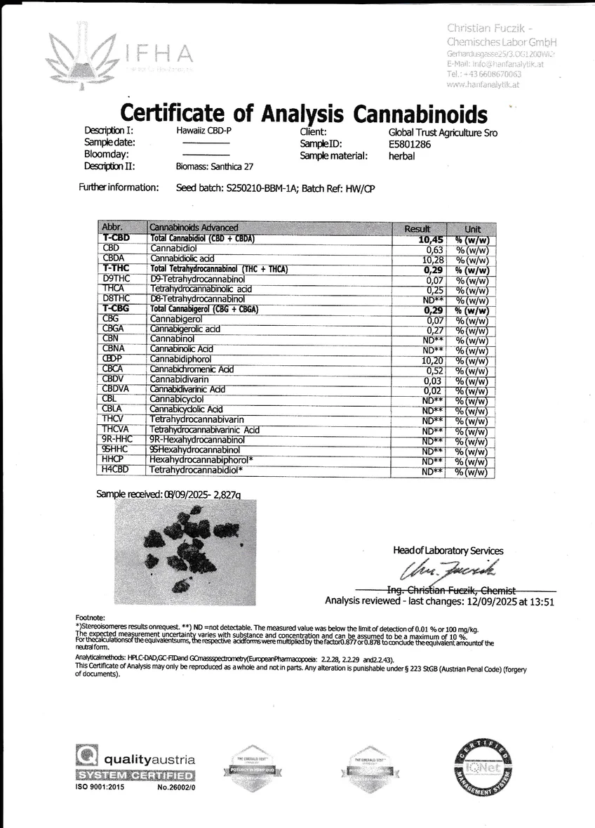- CBD : 10,45% ; THC : 0,29% enrichie en CBC