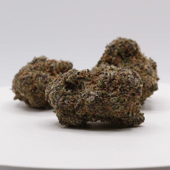 La Jelly Saphir CBD se présente avec des buds de taille moyenne à grosse, compactes et bien formées, affichant une robe teintée pourpre élégante. Leur cristallisation visible à l’œil nu reflète une excellente richesse en trichomes, gage de qualité et de puissance aromatique. La manucure top qualité et un curing parfaitement maîtrisé donnent une fleur sèche au toucher, facile à manipuler et agréable en vaporisation ou infusion.