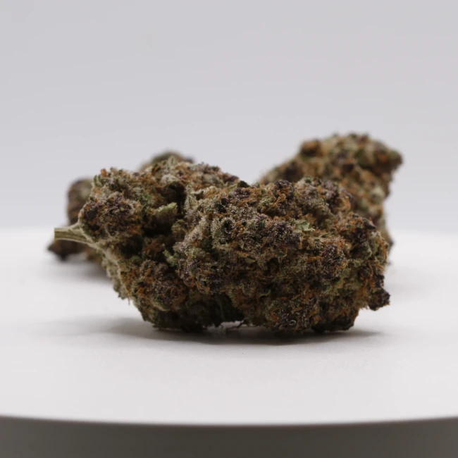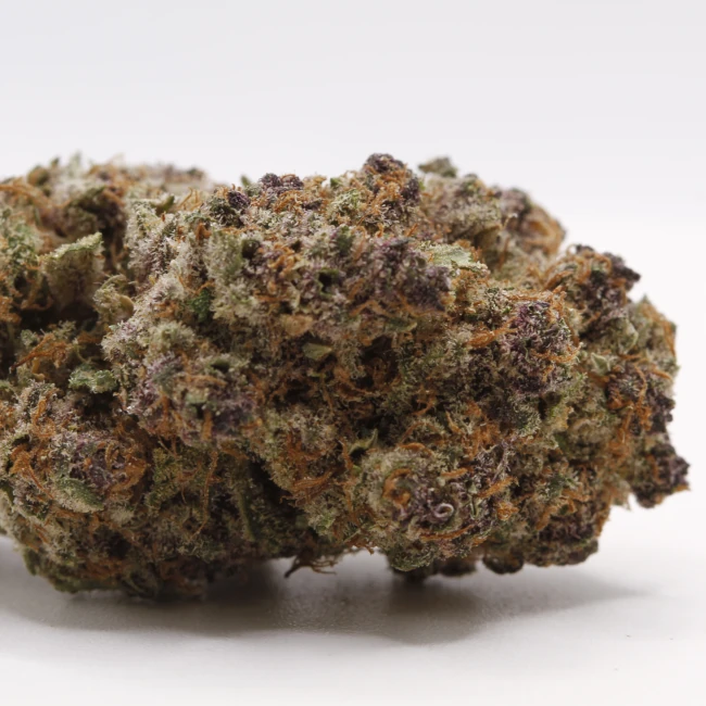 La Milka Pop présente des buds de taille moyenne, longilignes et particulièrement compactes. Sa palette visuelle alterne entre pourpre profond et vert lumineux, soulignée par une cristallisation abondante, clairement visible à l’œil nu. La manucure quasi parfaite met en valeur la structure de la fleur, et le curing maîtrisé lui apporte une texture idéale : sèche, dense et résineuse sans excès. Une fleur premium qui attire immédiatement le regard par son aspect gourmand et sophistiqué.