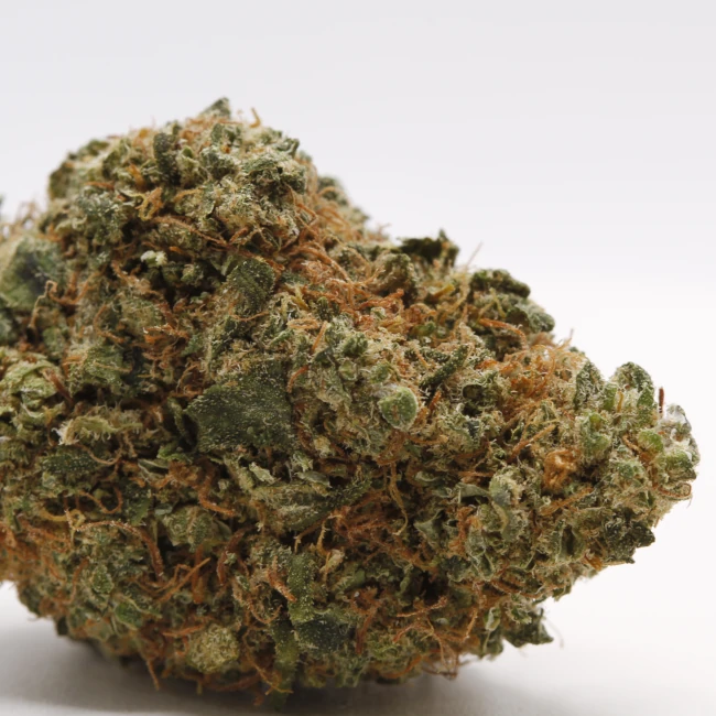 La Sour Diesel Cali se distingue par de grosses fleurs aérées, à la compacité moyenne, révélant une structure typique des génétiques californiennes. Sa teinte vert clair, presque lumineuse, est ponctuée d’une forte présence de pistils orange vif, qui donnent immédiatement du caractère à la fleur. Quelques petites feuilles résiduelles subsistent, signe d’une manucure naturelle respectant la densité et la texture originales. Une cristallisation discrète mais homogène vient compléter ce look authentique et résineux.