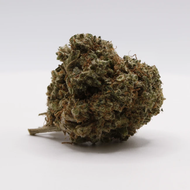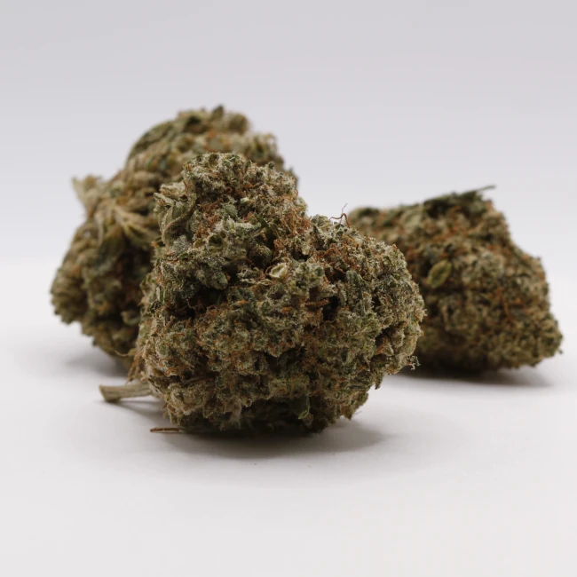 La fleur Zkittlez se reconnaît à ses buds de taille moyenne, relativement denses, habillés d’un vert moyen lumineux qui met en valeur ses pistils orange discrets mais bien présents. Sa structure équilibrée et naturelle reflète une culture maîtrisée, idéale pour les amateurs de fleurs soignées sans artifice.