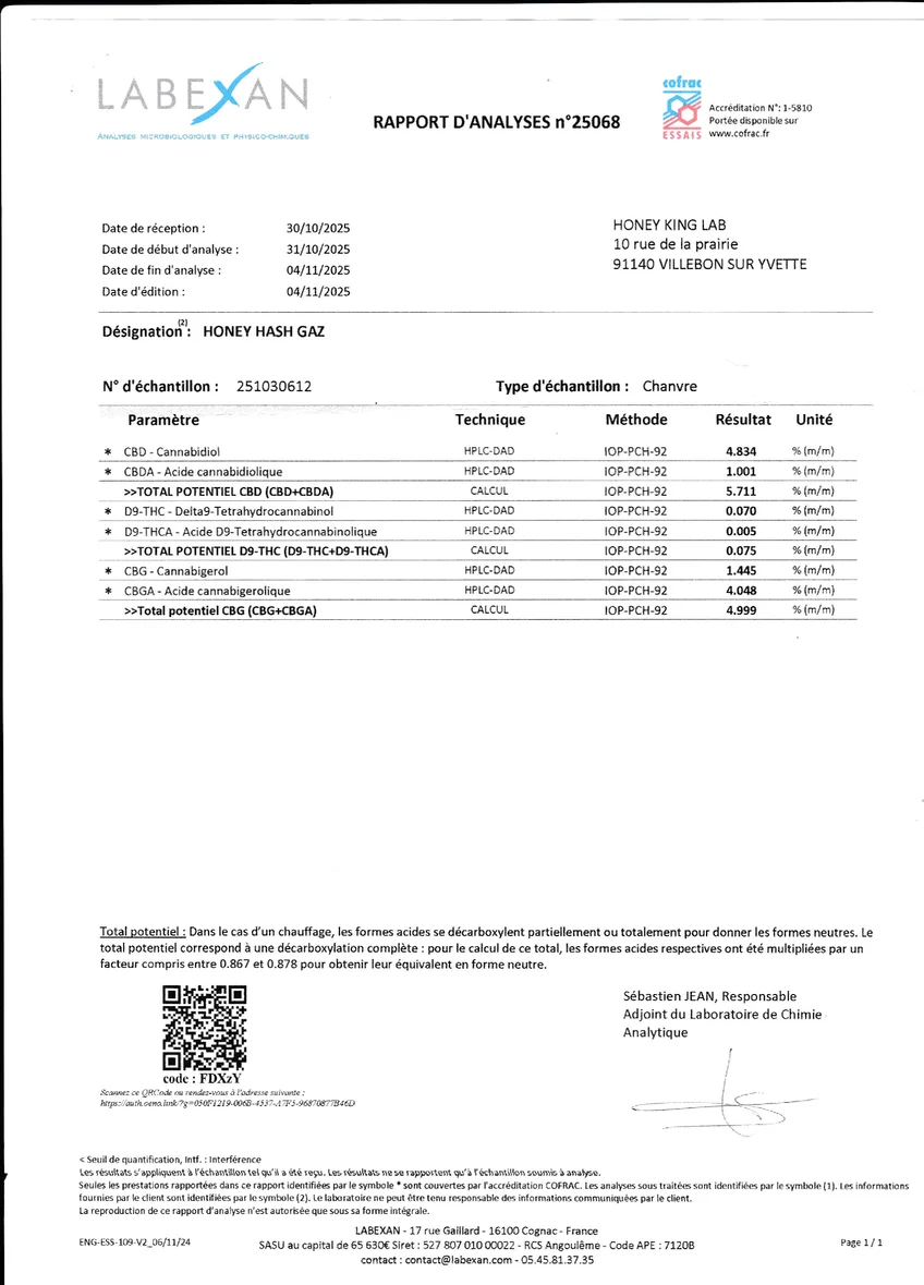 Résine THV Honey Hash Gaz
